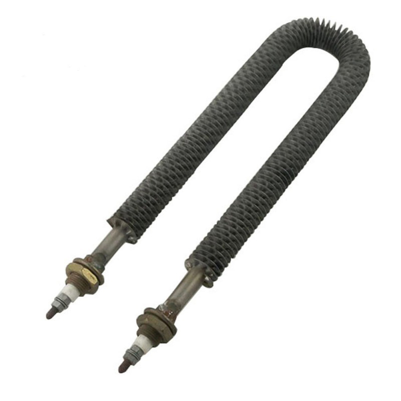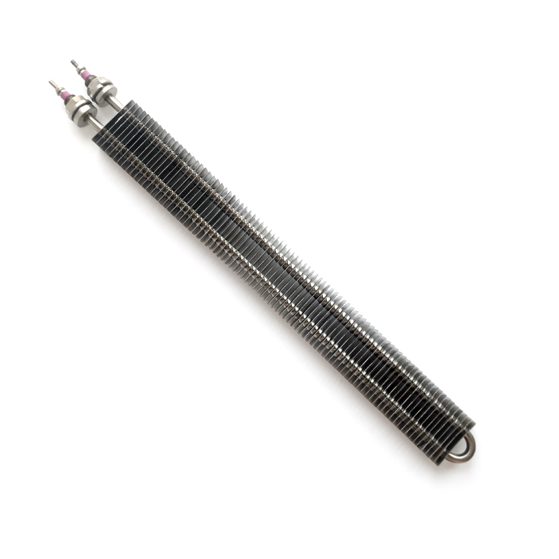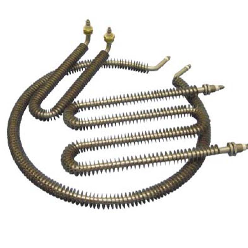A finned tubular air heater is an electric heating element with metal fins attached to increase surface area, improving heat transfer efficiency when heating moving air.