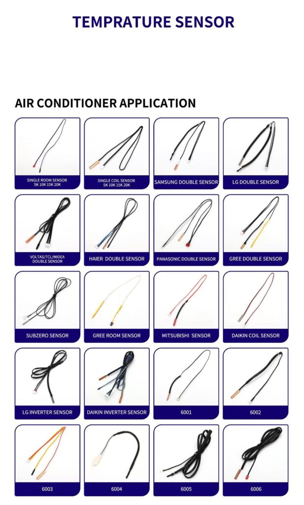 KAK thermistor temperature sensors are ideal for HVAC systems, heat pumps, air conditioners, washing machines, dehumidifiers, refrigeration units, and industrial temperature control applications.