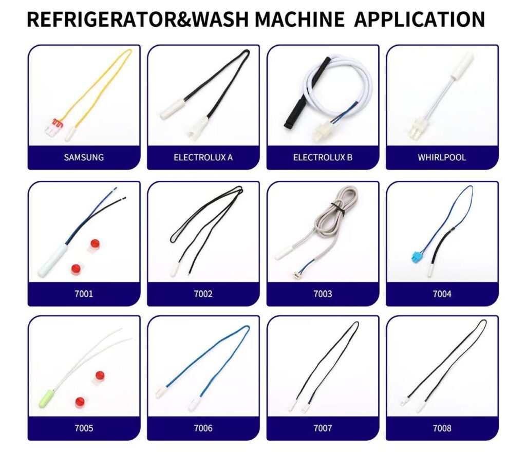 A thermistor temperature sensor is used to measure and control temperature in HVAC systems, industrial machinery, washing machines, refrigeration units and other home appliances. It converts temperature changes into resistance variations, providing accurate data for thermostats, heat pumps, and controllers.